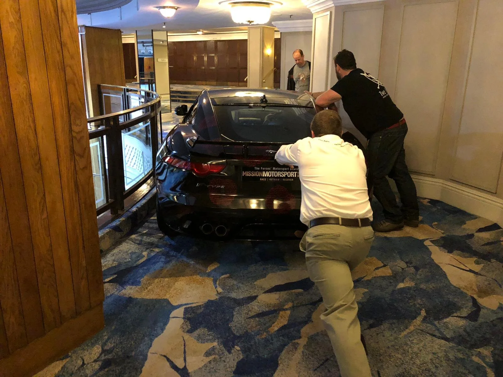 For clarity, right now a handful of Mission Motorsport staff are in a very ‘square peg/round hole’ situation; Jaguar F-Type SVR, meet ‘The Great Room’ at The Grosvenor House Hotel, Mayfair, London. The Great Room, meet F-Type, your suppository for the next 18 hours.
