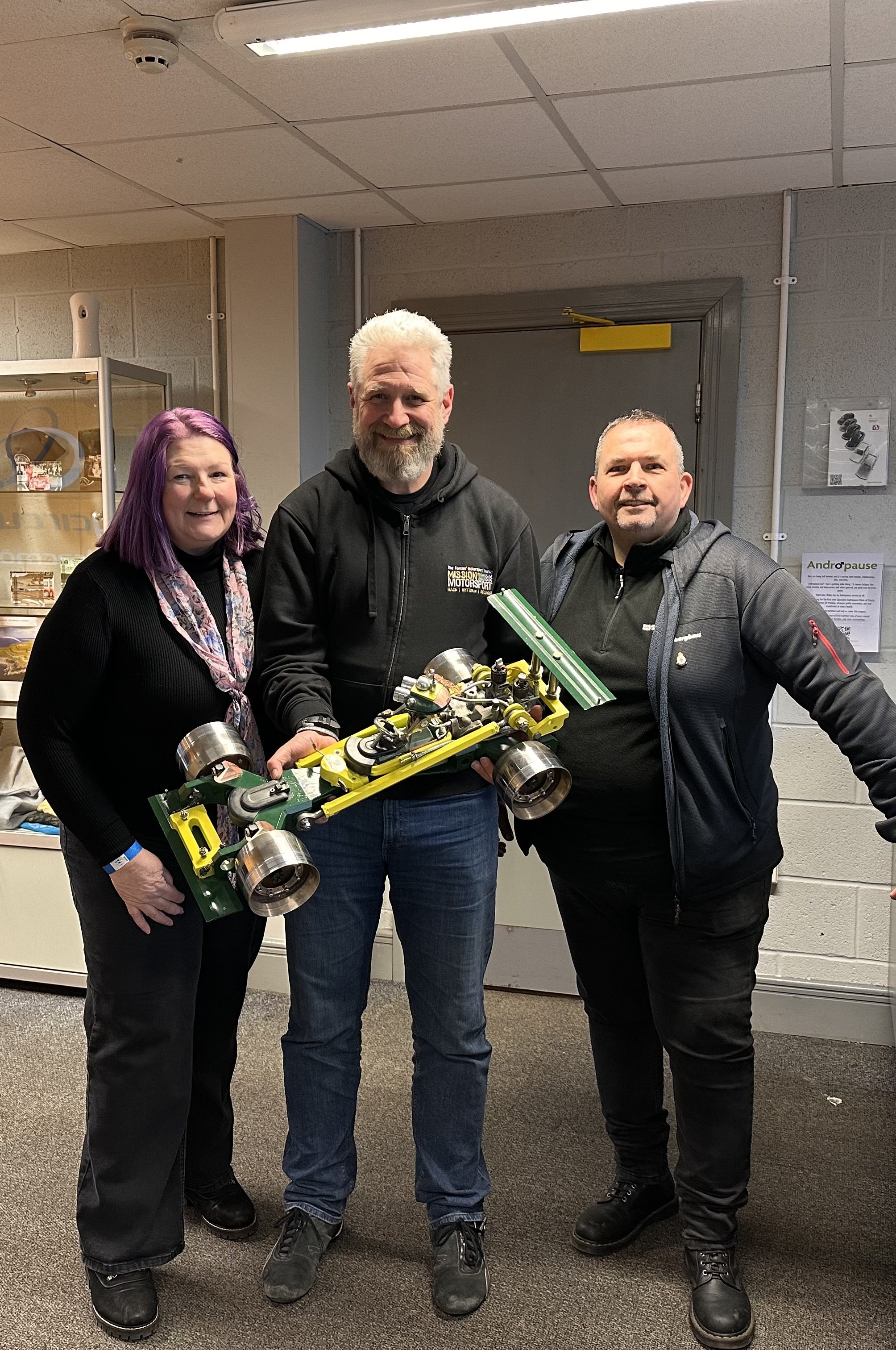 At the Mission Motorsport Charity Track Night at Anglesey Circuit, Andy had one of those moments that stays with you. He was absolutely thrilled to meet Chris Harris, someone he has admired for years. Chris took the time to talk with Andy and later signed the photograph of BertoLotty, which now forms part of the owner’s pack that accompanies the sculpture.