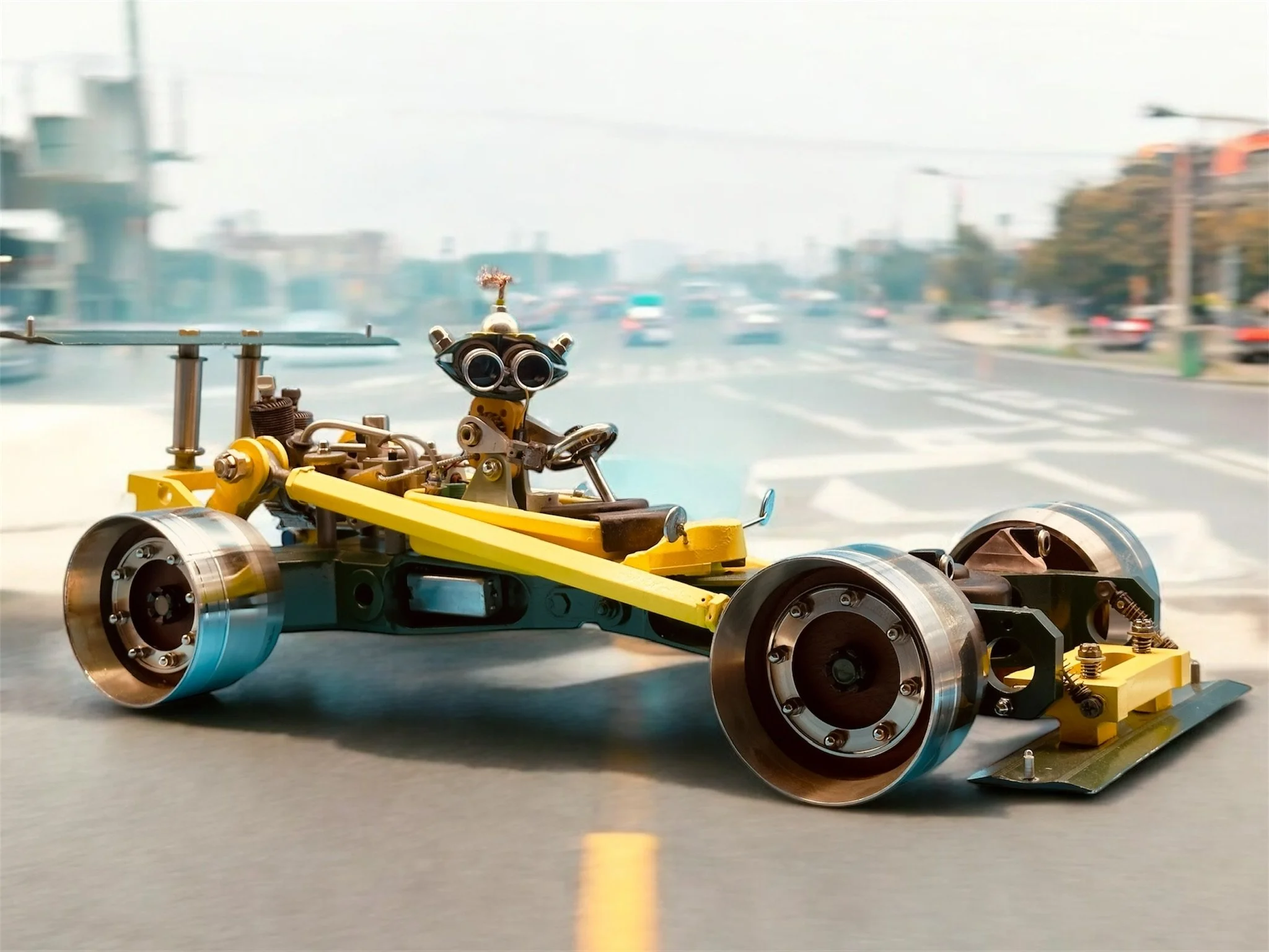 Meet BertoLotty, a unique F1 Autobert hand-built from reclaimed helicopter parts, vintage engineering, and pure imagination. Inspired by the speed and drama of Formula One, he features rotor-bearing wheels with mahogany centres, jet-inspired engine details, spirit-level spoilers, and classic Lotus racing colours. More than a sculpture, BertoLotty is a true collector’s piece and a celebration of reinvention and craftsmanship.